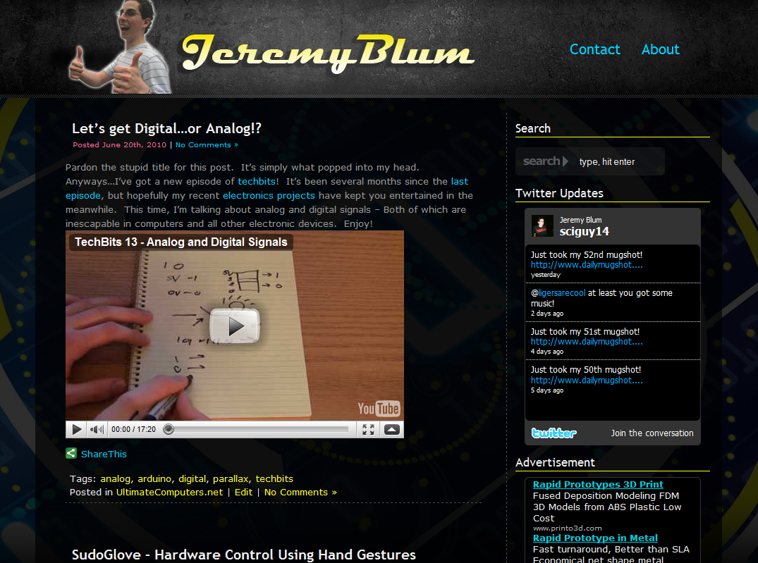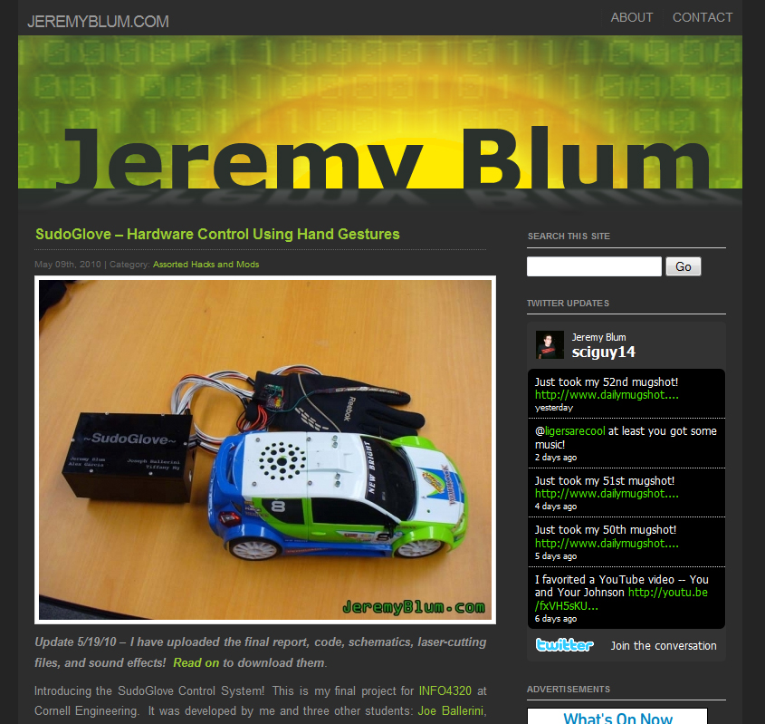 Well well… look who has finally decided to move his blog design out of the dark ages! I’ve spent the last month or two working on this new blog design – I really hope you like it! It takes advantage of a whole bunch of new wordpress blogging features like nested comments, better tag support, and widgets. For all you newcomers, here’s a shot of what jeremyblum.com used to look like: